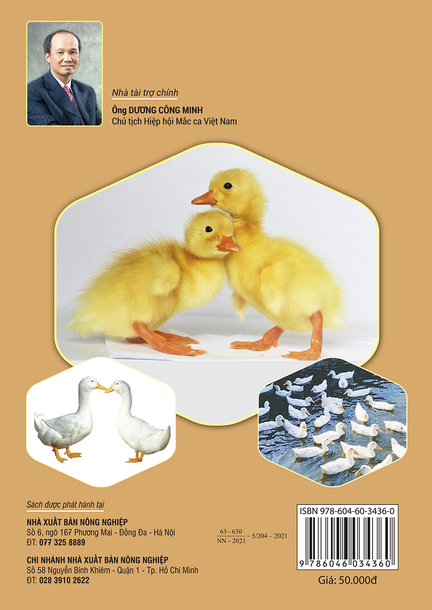- Phần 3. Giới thiệu kỹ thuật chăm sóc nuôi dưỡng: kỹ thuật nuôi vịt bố mẹ; kỹ thuật chăm sóc nuôi dưỡng vịt thương phẩm (kiểm soát mật độ nuôi, điều chỉnh ánh sáng, nhiệt độ, ẩm độ, thức ăn và cách cho ăn..)